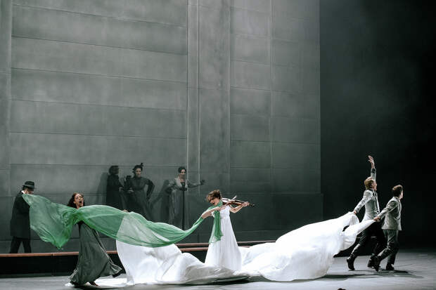 Сценическое пространство сведено к минимуму: одна стена, способная превращаться в дом, усадьбу, оперу. Это создаёт условия для максимального сосредоточения на актёрской игре. Музыкальное оформление, подготовленное Гиедрюсом Пускунигисом, включает мотивы Латенаса, духовную музыку Чайковского, Керубини и православные песнопения. Звук здесь не фон, а равноправный участник действия, проводник эмоциональных переходов. В спектакле звучит всё: от лёгкости первой любви до боли расставания, от тревоги до просветления. Война разрушает не только дома, но и внутренний мир персонажей, оголяя их сущность. На фоне всеобщей трагедии особенно отчётливо ощущаются те нравственные опоры, на которых держится человеческое: любовь, доброта, верность, достоинство.